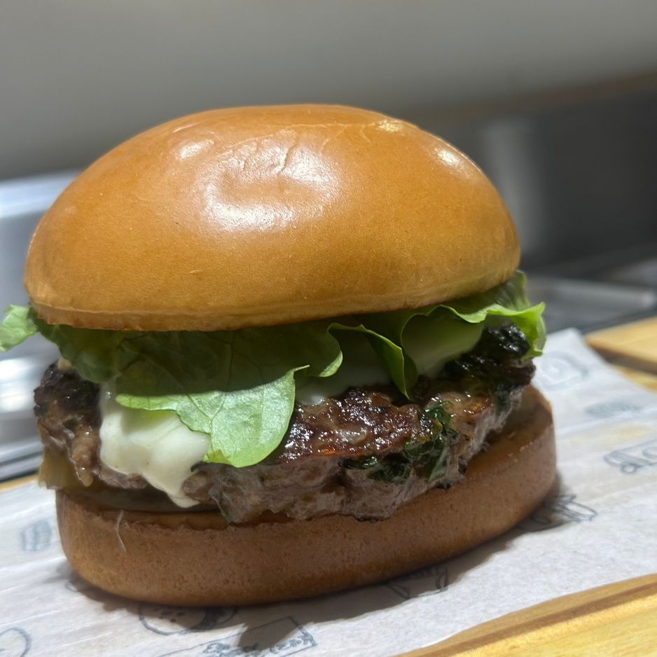 HAMBÚRGUER COSTELA 130GR CREAM CHESEE, QUEIJO MUSSARELA, ABACAXI COM PIMENTA, ALFACE AMERICANO E MAIONESE DE ALHO